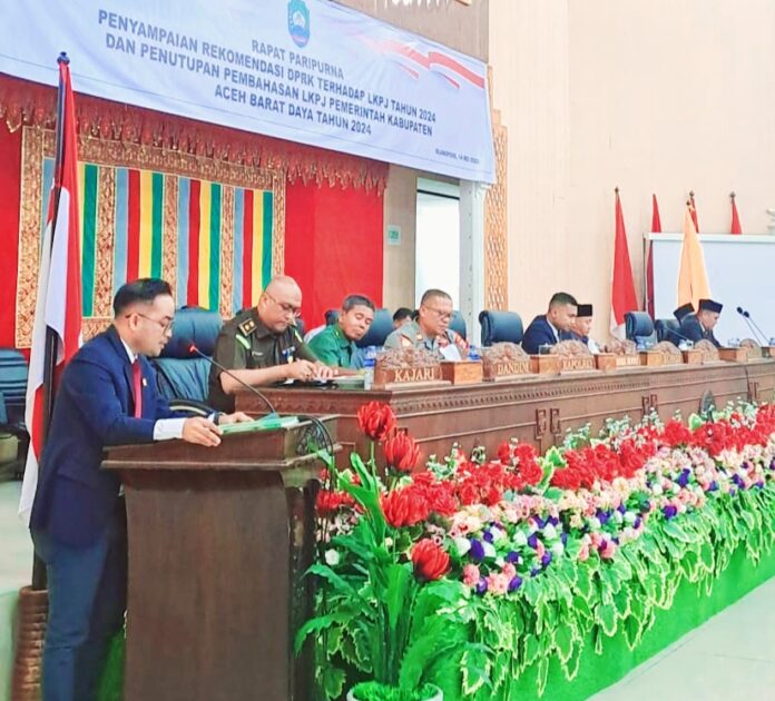 Hal itu disampaikan oleh Dedi Saputra dalam Rapat Paripurna dengan agenda Penyampaian Rekomendasi Terhadap Laporan Keterangan Pertanggung Jawaban (LKPJ) Tahun 2024 dan Penutupan Pembahasan LKPJ Kabupaten Aceh Barat Daya Tahun 2024, yang berlangsung di Aula DPRK setempat, Rabu (14/5/2025).