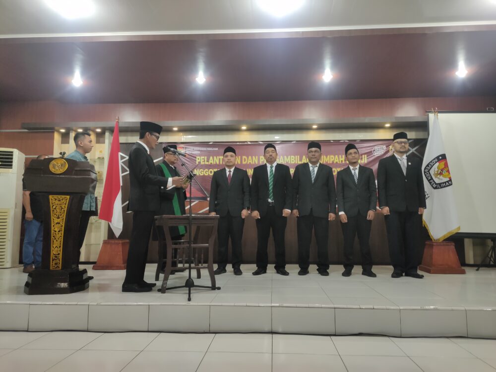 Pj Walikota Langsa Syaridin melantik para Komisioner KIP Langsa periode 2023-2028, Jum'at (20/10/2023) sore. Foto: Analisaaceh.com/Chairul.