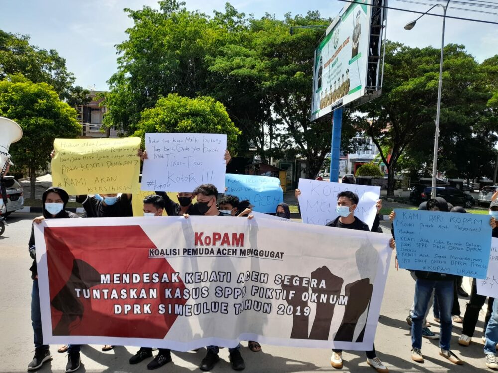 Dalam aksi tersebut, KoPAM mendesak kejaksaan untuk segera menuntaskan kasus SPPD fiktif oknum anggota Dewan Perwakilan Rakyat Kabupaten (DPRK) Simeulue tahun 2019. Selain itu, massa juga meminta Kejati Aceh untuk tidak bermain dalam kasus tersebut.