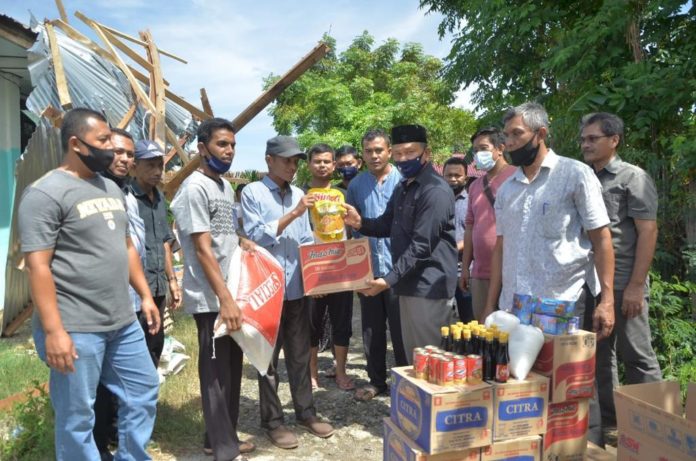 Bantuan berupa barang pokok yang terdiri dari 9 item diserahkan langsung Wakil Wali Kota, Banda Aceh Zainal Arifin secara simbolis kepada korban, Sabtu (18/7/2020) di Dusun Nurul Iman Gampong Punge Ujong.
