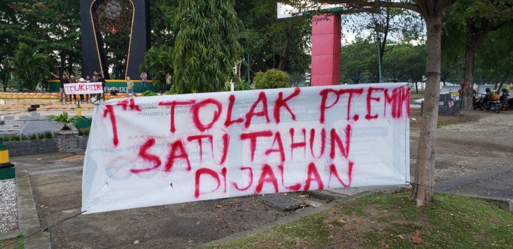 Analisaaceh.com, Banda Aceh | Korps Barisan Pemuda Aceh (Korps-BPA) melakukan Aksi Refleksi pasca 1 tahun melakukan demonstrasi penolakan terhadap PT.EMM di Taman Ratu Safiatuddin, Selasa (15/10/2019).