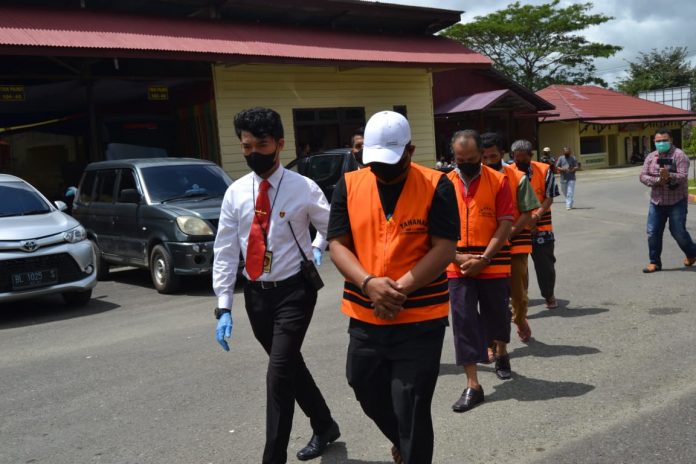 Analisaaceh.com, Sinabang | Kepala Desa Kuala Makmur, Kecamatan Simeulue Timur, Kabupaten Simeulue berserta tiga perangkat desa dan satu pemilik toko, ditangkap dan ditetapkan sebagai tersangka dugaan korupsi dana desa tahun anggan 2018 dan 2019.