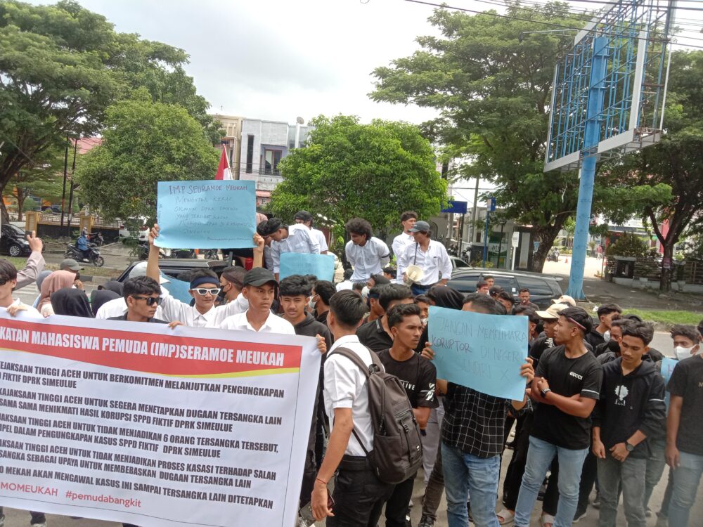Koordinator aksi, Aris Munandar mengatakan dari sejumlah eks anggota DPRK dan anggota DPRK aktif di Kabupaten setempat baru enam orang yang dihukum. Selebihnya masih berkeliaran bebas bahkan sebagian masih mencalonkan diri sebagai Bacaleg Pemilu 2024.