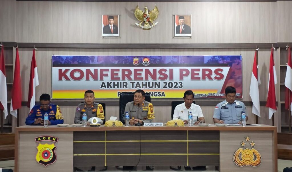 Hal itu disampaikan Kapolres Langsa AKBP Muhammadun,SH dalam konferensi pers akhir tahun di gedung Aula Mapolres setempat pada Kamis (28/12/2023) siang.