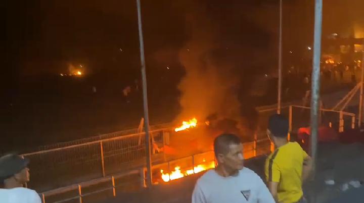 Pembakaran itu diduga dipicu karena kekecewaan penonton atas penundaan pertandingan.
