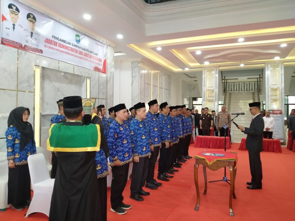 Wakil Bupati Abdya, Zaman Akli saat melantik dan mengambil sumpah terhadap 17 pejabat eselon III dan IV yang berlangsung di Opproom Kantor Bupati setempat. Foto:Ahlul Zikri/Analisaaceh.com