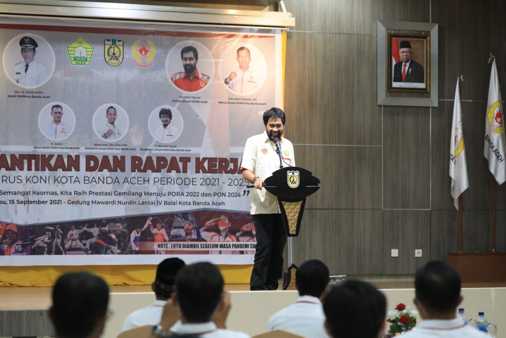 Kepengurusan KONI Kota Banda Aceh yang baru dibawah kepemimpinan Hamdani Basyah dilakukan Rabu (15/9/2021) di Aula Lantai IV Gedung Mawardy Nurdin Balai Kota Banda Aceh.
