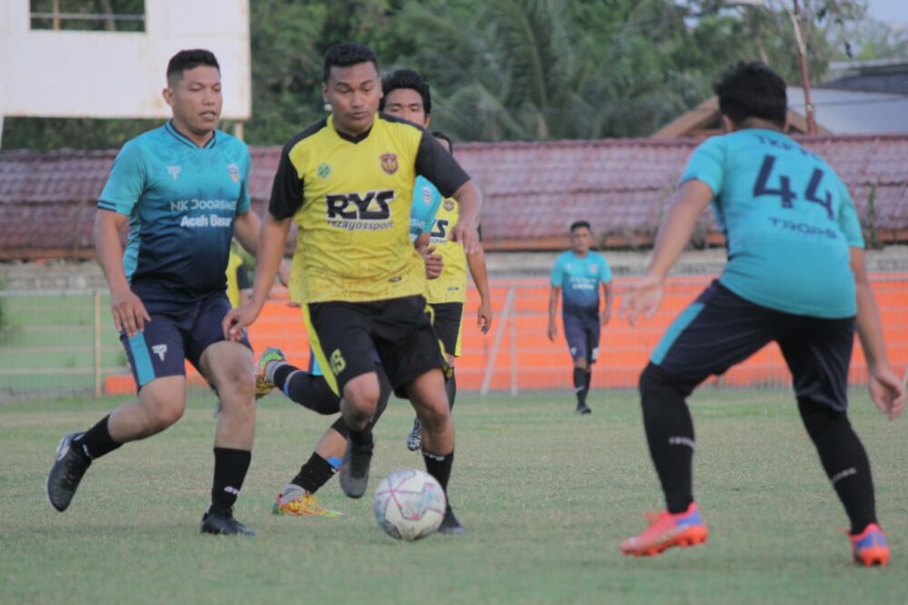 Analisaaceh.com, Banda Aceh | Dua gol (Brace) Plt Ketua DPRA, Safaruddin atau yang lebih dikenal dengan ‘Dhien Kallon’ mampu membawa klubnya Legend Sigupai menang telak dengan skor 4-1 atas tim TKP FC dalam pertandingan silaturahmi perdana usai Idul Fitri di Stadion H Dimurthala Lampineung, Kamis (12/5/2022).