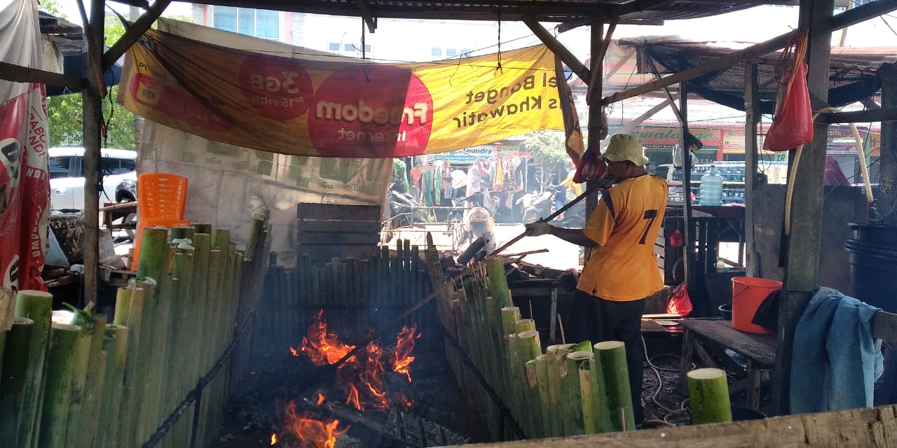 Kendati demikian, hawa panas dari perapian tersebut tidak membuat Yakop surut. Ia terlihat sangat telaten dalam membolak-balikkan puluhan buluh bambu muda yang berisi ketan dan ubi tersebut.