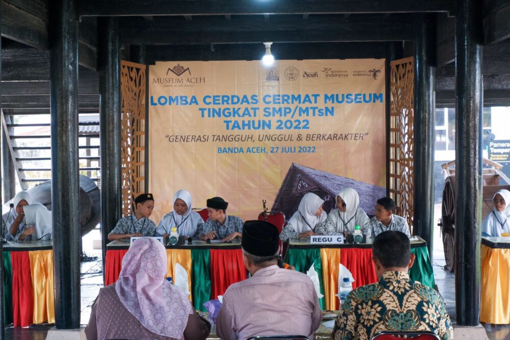 Analisaaceh.com, Banda Aceh | Unit Pelaksana Teknis Daerah (UPTD) Museum Aceh menggelar lomba cerdas cermat tingkat SMP/MTsN Tahun 2022 di bawah Rumoh Aceh, Kompleks Museum Aceh, Rabu, 27 Juli 2022.