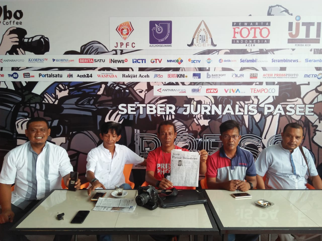 Menanggapi hal ini, sejumlah organisasi profesi wartawan di Kota Lhokseumawe dan sekitarnya menggelar konpers pada Jumat (5/7) di Sekber Jurnalis Pasee, Kota Lhokseumawe.