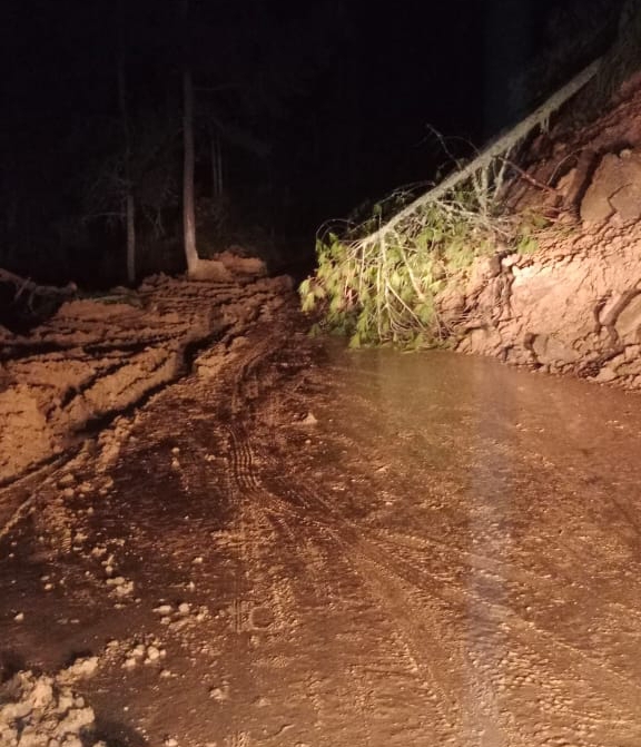 Longsor di kawasan KM 50, Desa Simpang Tiga Uning, Kecamatan Linge, Aceh Tengah, Senin (30/1/2023) sekira 19.30 WIB. Foto: Ist.