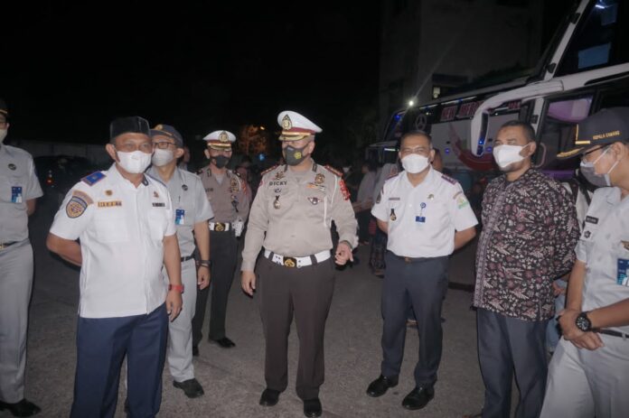 Analisaaceh.com, Banda Aceh | Dirlantas Polda Aceh Kombes Dicky Sondani yang didampingi Kadishub, Kacab Jasa Raharja, dan Kepala Terminal Batoh meninjau arus mudik lebaran Idulfitri di Terminal Batoh, Kota Banda Aceh, Jumat (22/4/2022) malam.