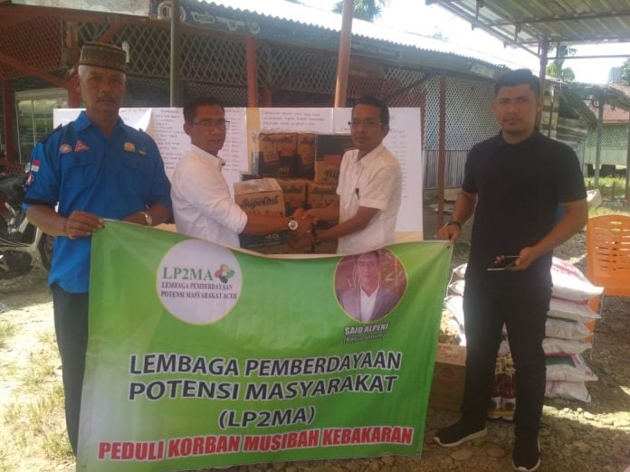 Analisaaceh.com | Aceh Selatan – Ketua Umum Lembaga Pemberdayaan Potensi Masyarakat Aceh (LP2MA) Said Alpeni menyerahkan bantuan tanggap darurat kepada korban kebakaran di Kecamatan Bakongan, Rabu (7/8/2019).