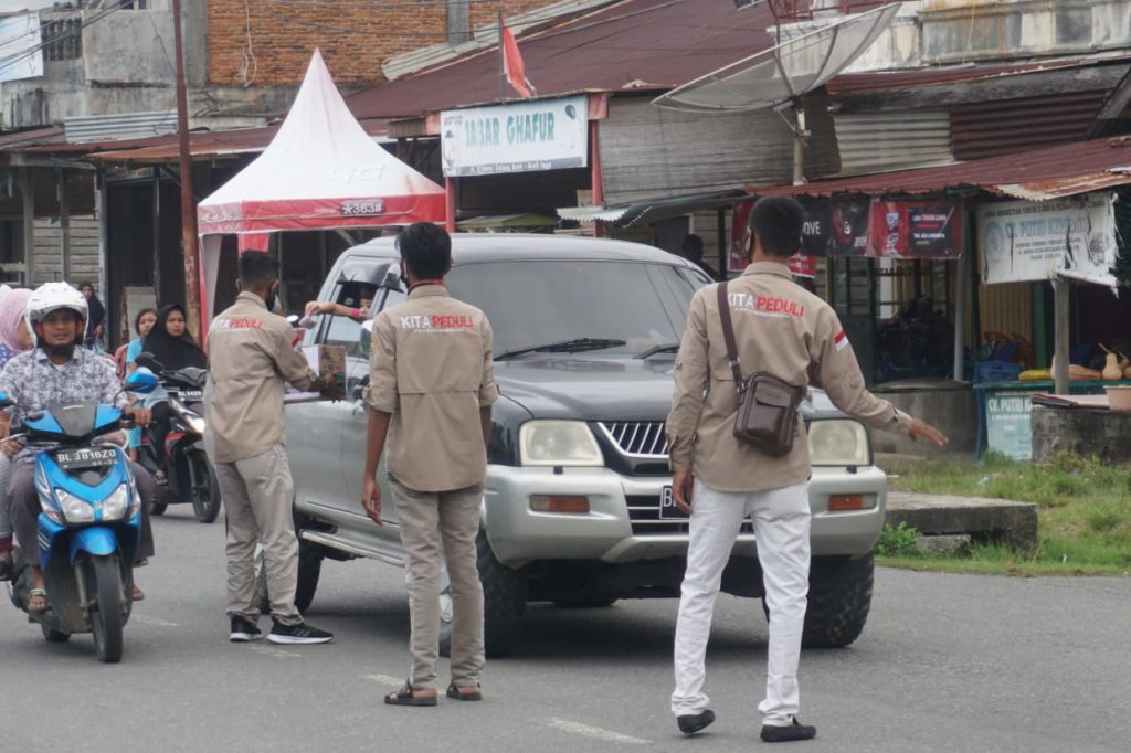 Analisaaceh.com, Calang | LSM kita Peduli bersama Ikatan Pelajar dan Mahasiswa Panga (IPELMAPA) bagikan 4000 masker gratis serta penggalangan dana untuk masyarakat korban banjir bandang Paya Tumpi Aceh Tengah di Jalan Nasional Banda Aceh – Meulaboh, Calang, (18/05/2020)
