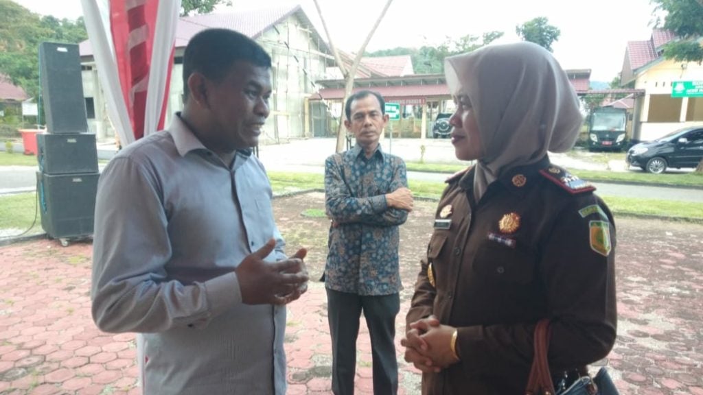 Koordinator Lsm Kompak Saharuddin (kiri) sedang berbincang-bincang dengan Kajari Abdya Nilawati, SH,MH (Kanan)