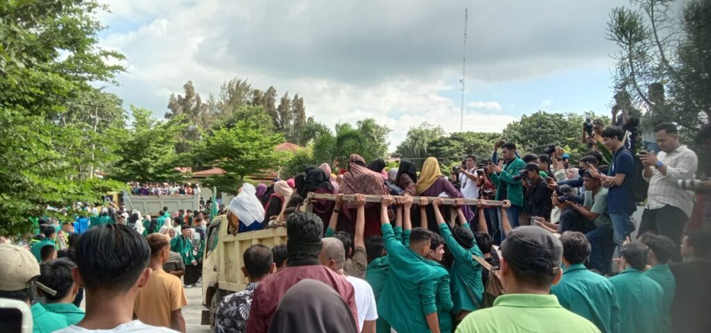 Analisaaceh.com, Banda Aceh | Massa menggeruduk masuk ke bawah Basement Balai Meseuraya Banda Aceh (BMA) dan membawa ratusan pengungsi Rohingya ke Kantor Kementerian Hukum dan Hak Asasi Manusia (Kemenkumham) Aceh, Rabu (27/12/2023).