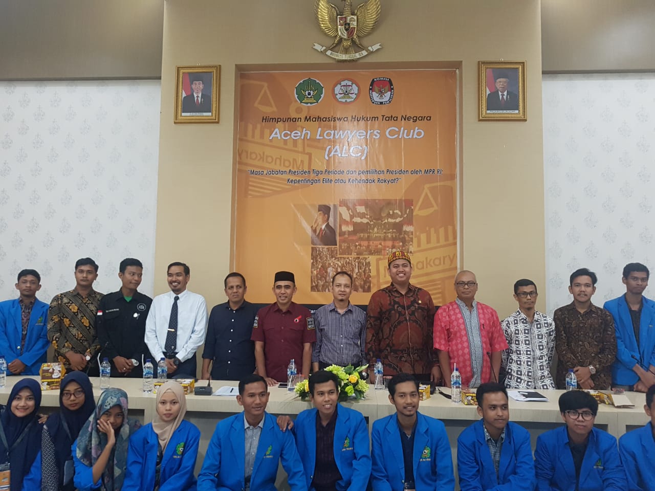 Diskusi dengan Tema “Masa Jabatan Presiden Tiga Periode dan Pemilihan Presiden oleh MPR RI; Kepentingan Elite atau Kehendak Rakyat ?” ini dibahas dalam agenda diskusi publik Aceh Lawyers Club (ALC) di Aula Badan Kesbangpol Aceh, Banda Aceh, Sabtu (14/12/2019).