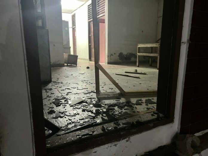 Kejadian tersebut menyebabkan kerusakan bangunan dan melukai beberapa mahasiswa.