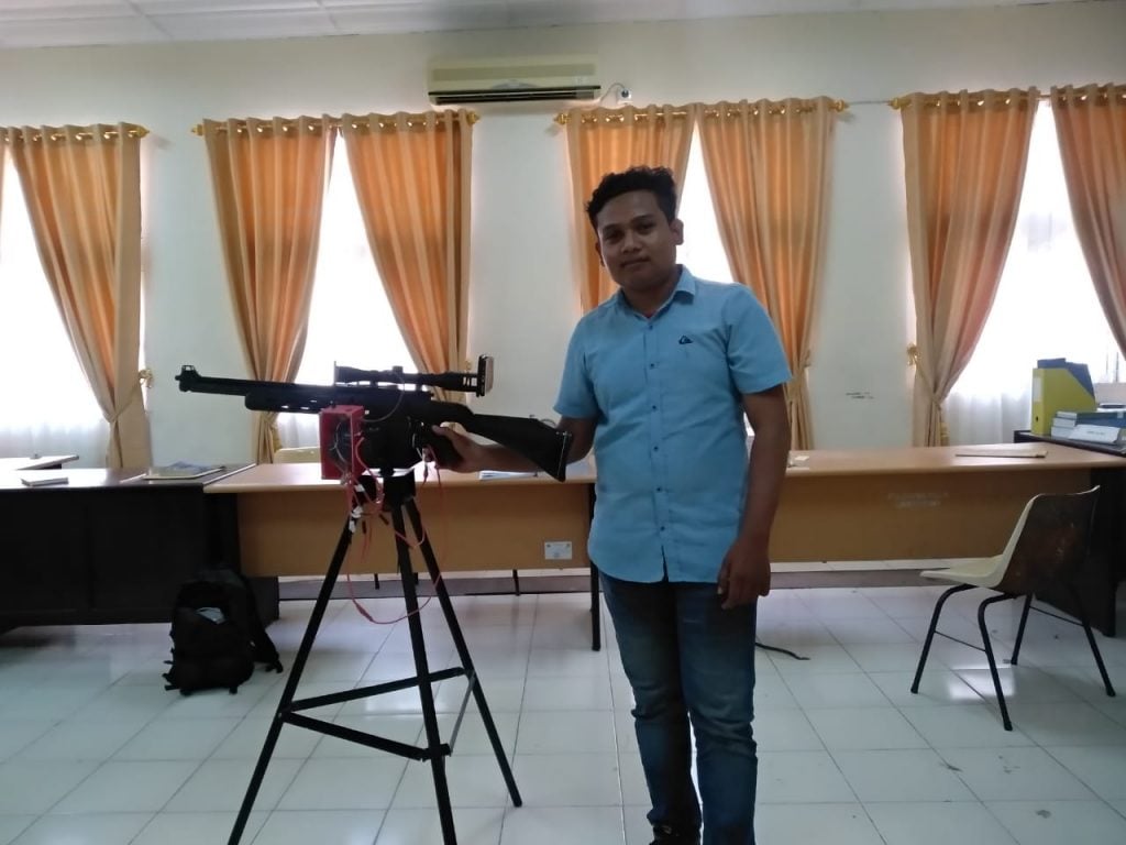 Ririn Efendi, mahasiswa Politeknik Negeri Lhokseumawe dan hasil rancangannya pengendali senapan secara wireless,@ist