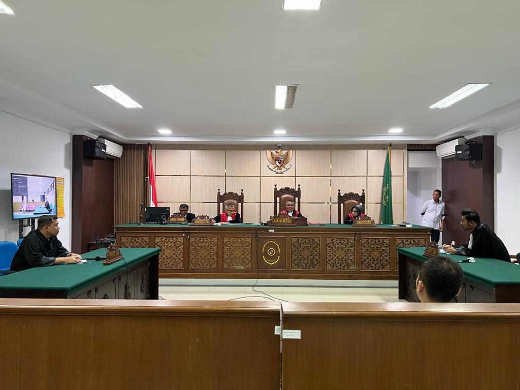 Sidang Pengadilan Tipikor Banda Aceh yang dihadiri langsung oleh terdakwa Dodi Anshari bersama tim penasehat hukumnya serta dihadiri oleh Jaksa Penuntut Umum (JPU) Kejari Sabang Muliana pada Senin (11/9/2023). Foto : ist