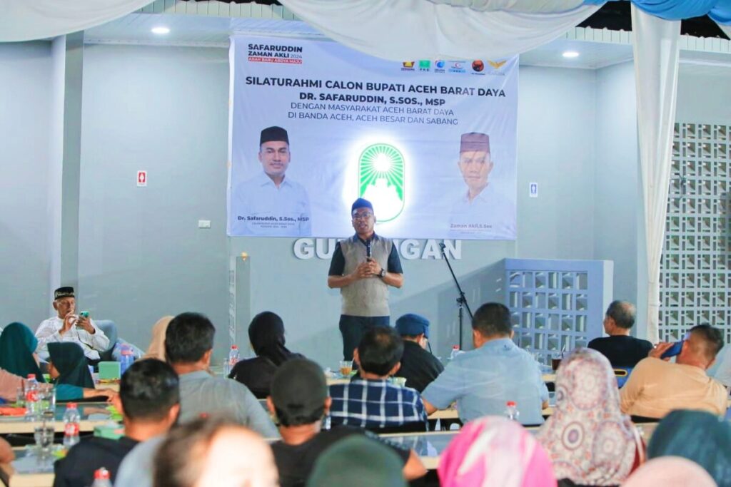 Analisaaceh.com, Banda Aceh | Calon Bupati Aceh Barat Daya, Safaruddin, menggelar silaturahmi dengan masyarakat dan mahasiswa Abdya dari berbagai perguruan tinggi yang sedang menempuh pendidikan di Banda Aceh, dalam sebuah pertemuan di Warkop Gunongan, Jalan Teuku Umar, Sukaramai, Kecamatan Baiturrahman, Banda Aceh, Jumat (27/9/2024) malam.