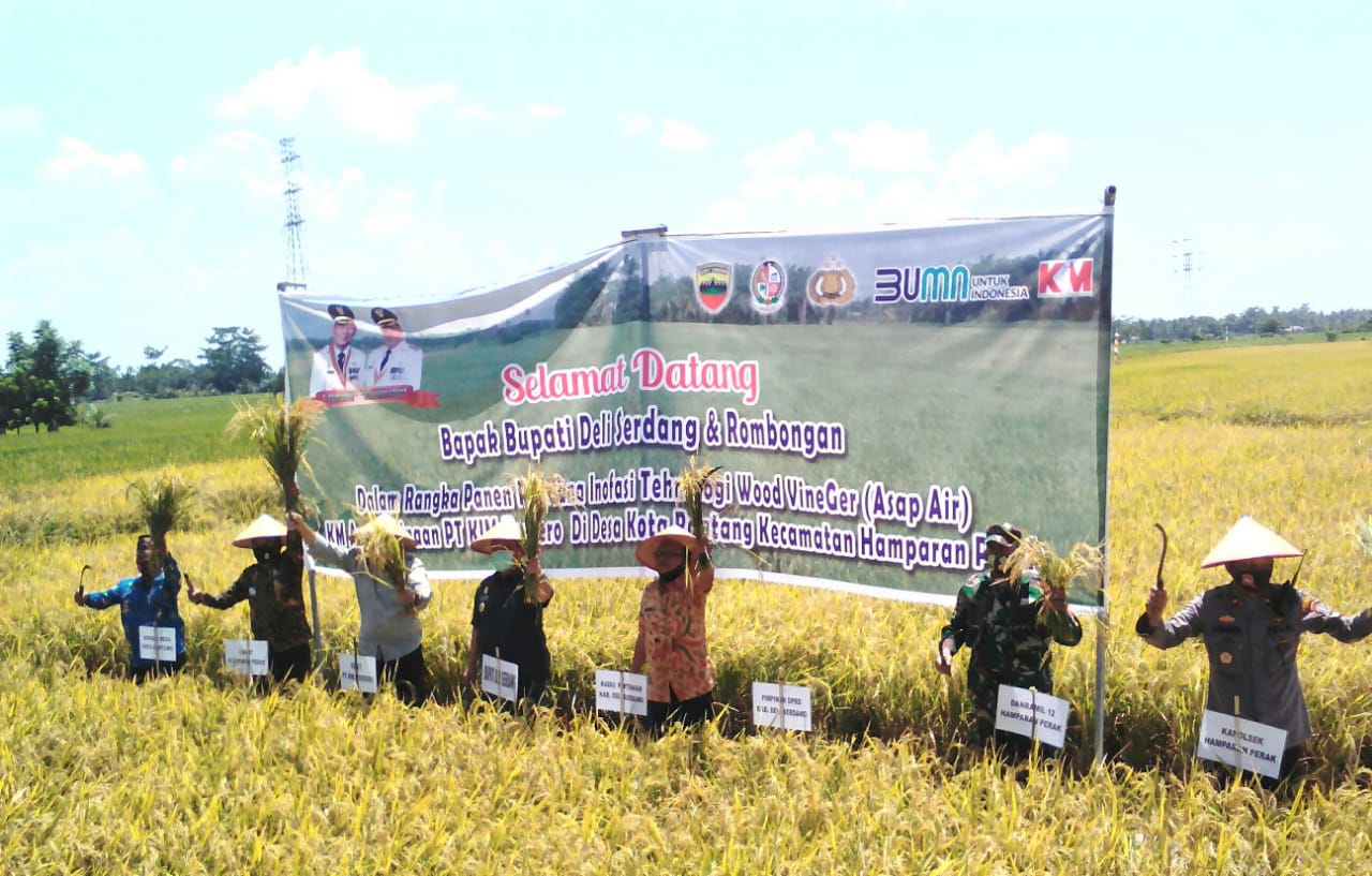 Dalam panen perdana tersebut PT KIM sebelumnya telah menghadirkan teknologi Vinegar Wood (asap cair) untuk peningkatan hasil panen padi untuk Desa-Desa Kota Rantang di Kecamatan Hamparan Perak.