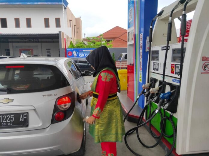 Analisaaceh.com, Banda Aceh | Dalam rangka memperingati Hari Pelanggan Nasional, petugas Stasiun Pengisian Bahan Bakar (SPBU) Trinanda Jaya Sinergi Banda Aceh di Jalan Syiah Kuala, Kuta Alam, Kota Banda Aceh memakai adat pada Senin (4/9/2023).