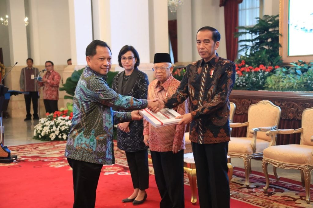 Analisaaceh.com, Jakarta | Presiden Joko Widodo menyerahkan Daftar Isian Pelaksanaan Anggaran (DIPA) dan Buku Daftar Alokasi Transfer ke Daerah dan Dana Desa 2020. Acara yang juga turut dihadiri oleh Menteri Dalam Negeri (Mendagri) Tito Karnavian tersebut berlangsung secara simbolis di Istana Negara Jakarta, pada Kamis (14/11/2019)