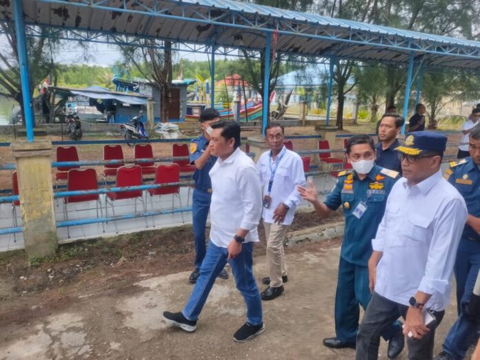Analisaaceh.com, Langsa | Menteri Perhubungan (Menhub) Republik Indonesia Ir. Budi Karya Sumadi melakukan kunjungan dan peninjauan lokasi pengerukan jalur masuk kapal besar ke pelabuhan di Gampong Kuala Langsa, Kecamatan Langsa Barat, Kota Langsa, Rabu (8/2/2023) sore.