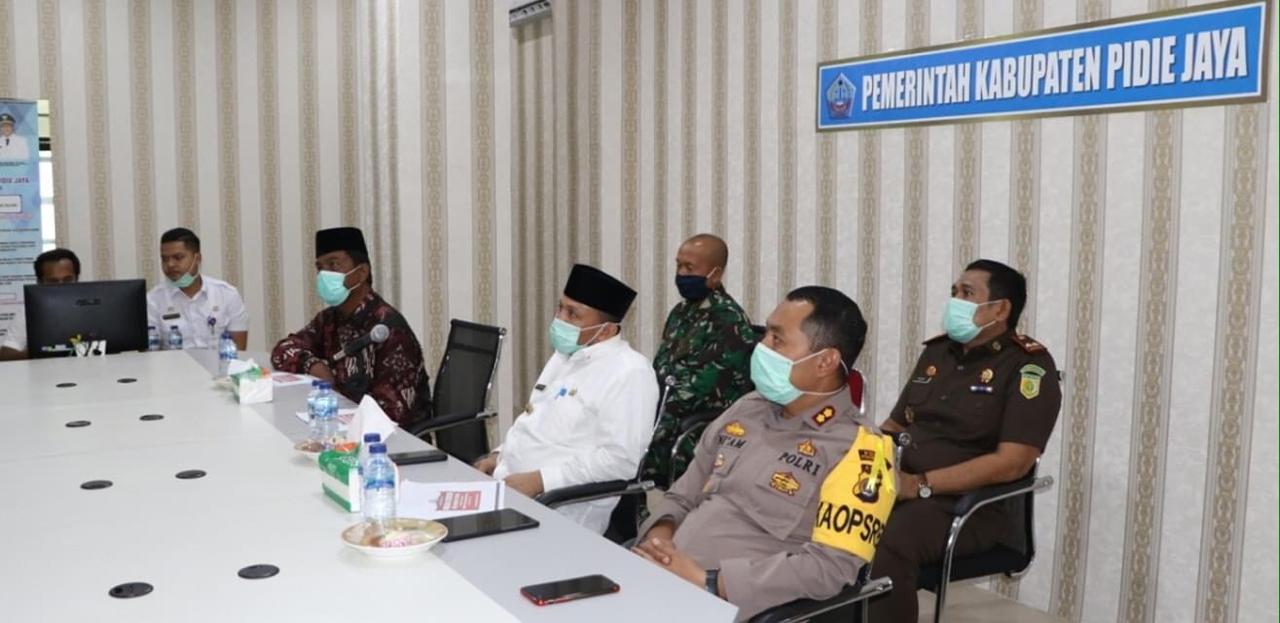 Analisaaceh.com, Pidie Jaya | Bupati dan wakil Bupati bersama Forum Komunikasi Pimpinan Daerah (Forkopimda) Kabupaten Pidie Jaya menggelar Rapat Koordinasi (Rakor) dengan Forkopimda Aceh melalui Video Conference (Vidcon) Terkait Perkembangan Penanganan Corona Virus Disease (Covid-19)
