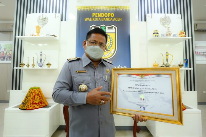Analisaaceh.com, Banda Aceh – Pemerintah Kota Banda Aceh berhasil meraih penghargaan dari Kementerian Pendayagunaan Aparatur Negara dan Reformasi Birokrasi (KemenPANRB) atas prestasi dalam Sistem Akuntabilitas Kinerja Instansi Pemerintah (SAKIP) dengan predikat Baik “B”.