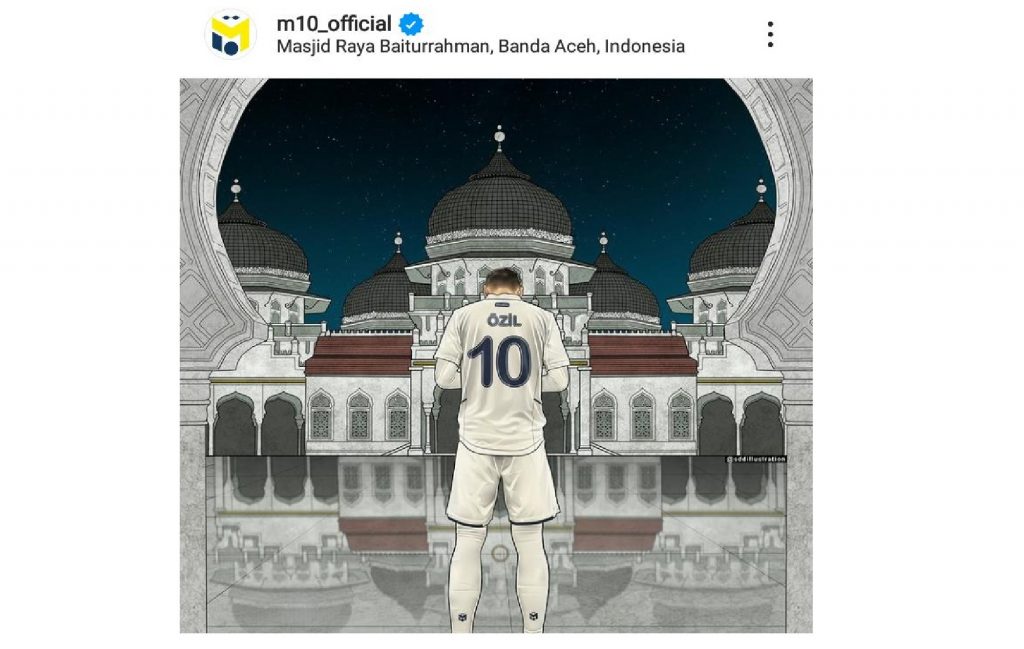 Dalam foto itu terlihat Ozil berdiri mengenakan baju putih bernomor punggung 10 dan menghadap ke arah masjid kebanggaan masyarakat Aceh tersebut.