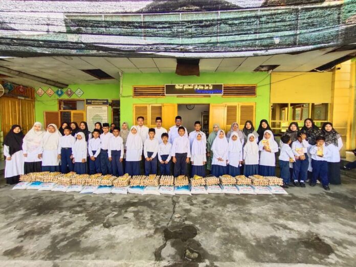 Analisaaceh.com, Blangpidie | Dalam rangka memperingati Hari Yatim dan menyambut bulan suci Ramadhan, Madrasah Ibtidaiyah (MI) Muhammadiyah Blangpidie Kabupaten Aceh Barat Daya (Abdya) membagikan sembako untuk anak-anak yatim di lingkungan sekolah.