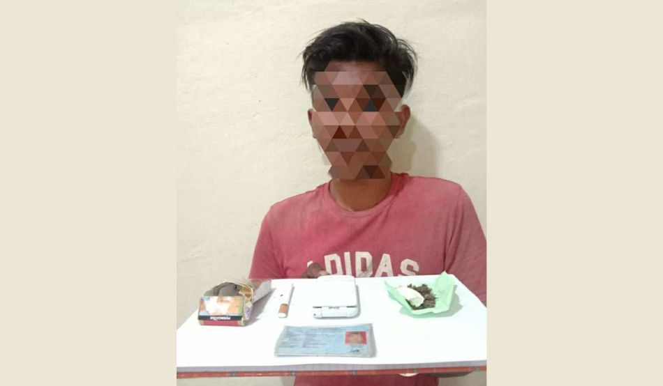 Dari tangan pelaku berhasil diamankan barang bukti berupa 1 buah kotak rokok gudang baru, 1 batang rokok gudang baru, 1 unit HP merek strawberry warna putih dan 1 batang rokok pasopati bercampur ganja kering.