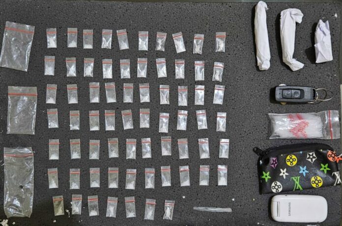 Saat dilakukan penggeledahan, sambung Kasat, petugas menemukan barang bukti narkotika sabu-sabu sebanyak 67 paket kecil dengan berat 6 gram bruto dan tiga buah kertas putih berisikan ganja seberat 11 gram bruto.