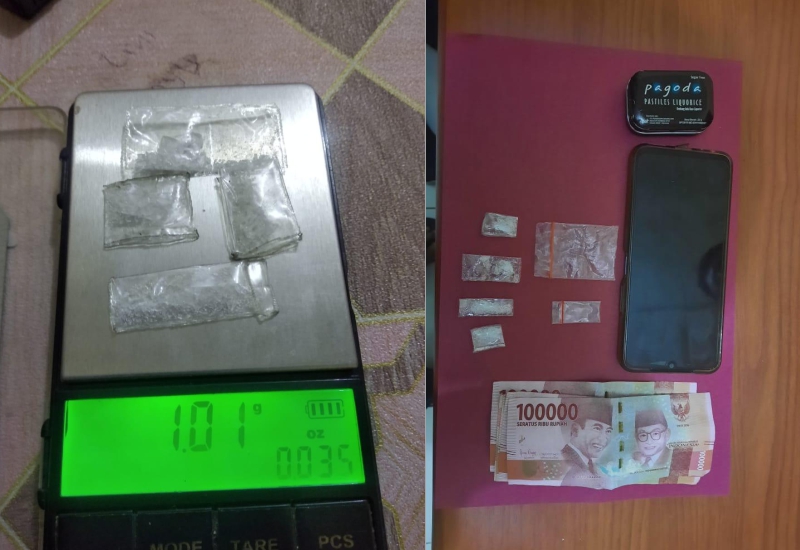 Kemudian empat paket plastik transparan yang diduga berisikan Narkotika jenis Sabu, dengan berat bruto 1,01 gram, dua unit HP, satu unit sepeda motor jenis Honda Beat warna merah dan uang sejumlah Rp 500 ribu.