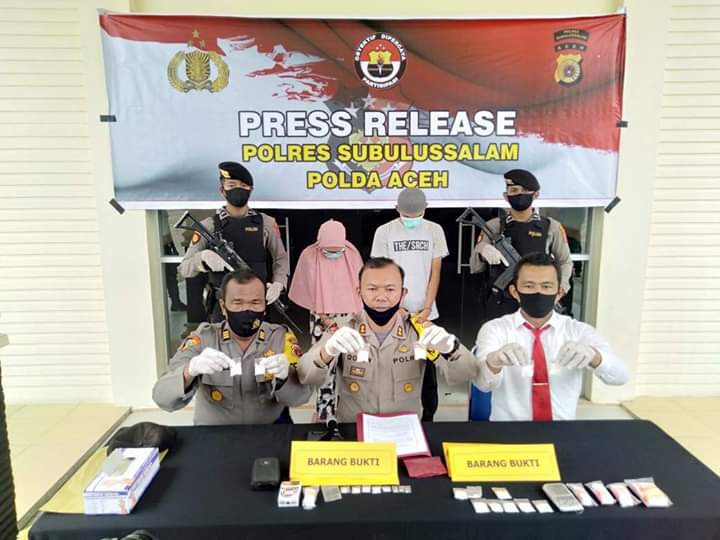 Kapolres Subulussalam AKBP Qori Wicaksono, SIK didampingi Kasat Narkoba, IPDA Hengki Herianto SH, MH dan Kabag Ops, AKP Raman Manurung mengatakan, pihaknya pertama menangkap SB yang merupakan seorang IRT. Kemudian setelah dilakukan pengembangan, petugas berhasil mengamankan IP.