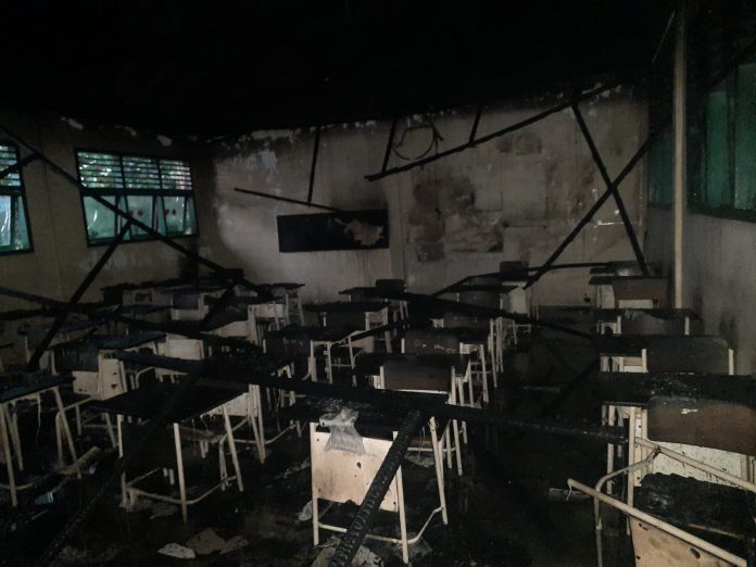 Setiba di lokasi, kata Farhan, api sudah membesar dan menghanguskan enam ruang belajar beserta kursi dan meja belajar dengan kondisi rusak berat.