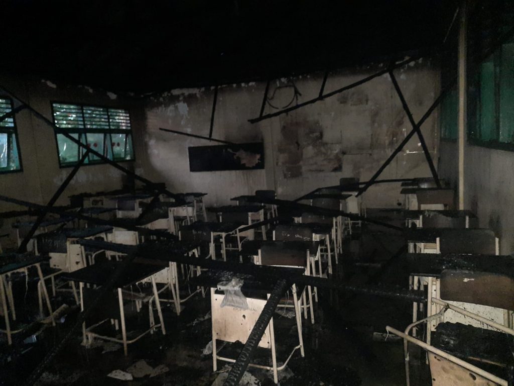 Setiba di lokasi, kata Farhan, api sudah membesar dan menghanguskan enam ruang belajar beserta kursi dan meja belajar dengan kondisi rusak berat.