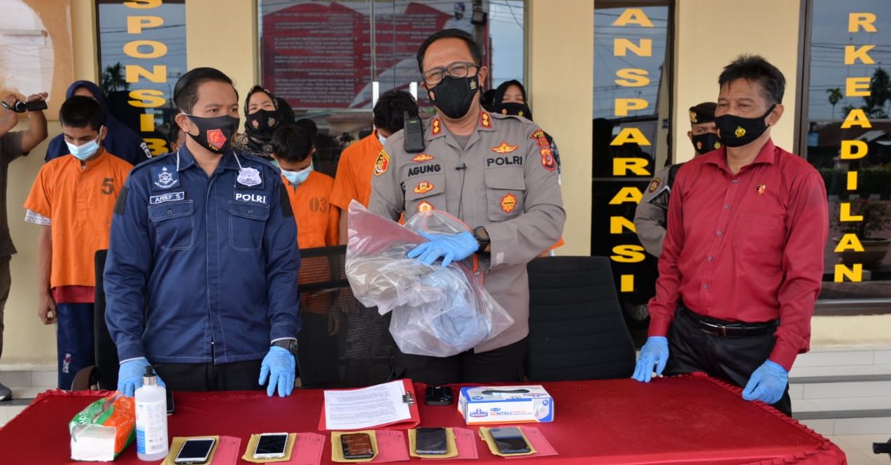 “Tersangka NS, MKA, MH, MNH, MRA, MRE, MVP ditangkap pada hari Sabtu tanggal 20 Maret 2021 sekira pukul 03.00 WIB. Mereka ditangkap di rumah masing-masing, sedangkan MS dan MOS menyerahkan diri ke Polres Langsa pada 23 Maret,” ungkap Agung.