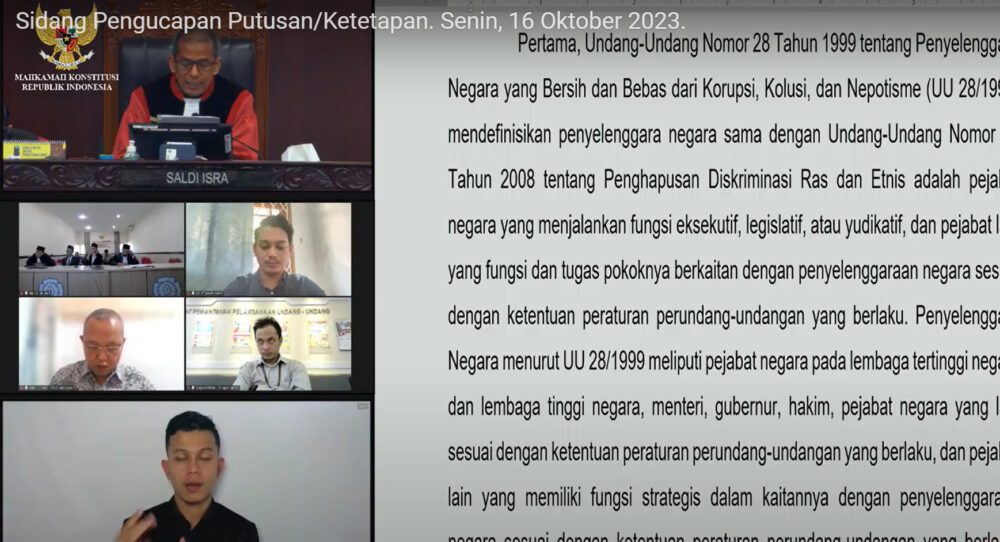 “Menolak permohonan pemohon untuk seluruhnya,” kata Ketua MK Anwar Usman dalam sidang di Gedung MK, Jalan Medan Merdeka Barat, Gambir, Jakarta Pusat, Senin (15/10/2023).