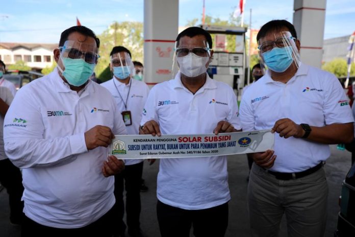 Analisaaceh.com, Banda Aceh | Pemerintah Aceh bersama PT. Pertamina (Persero) meresmikan program pemasangan stiker pada mobil yang menggunakan bahan bakar minyak (BBM) bersubsidi di Aceh.