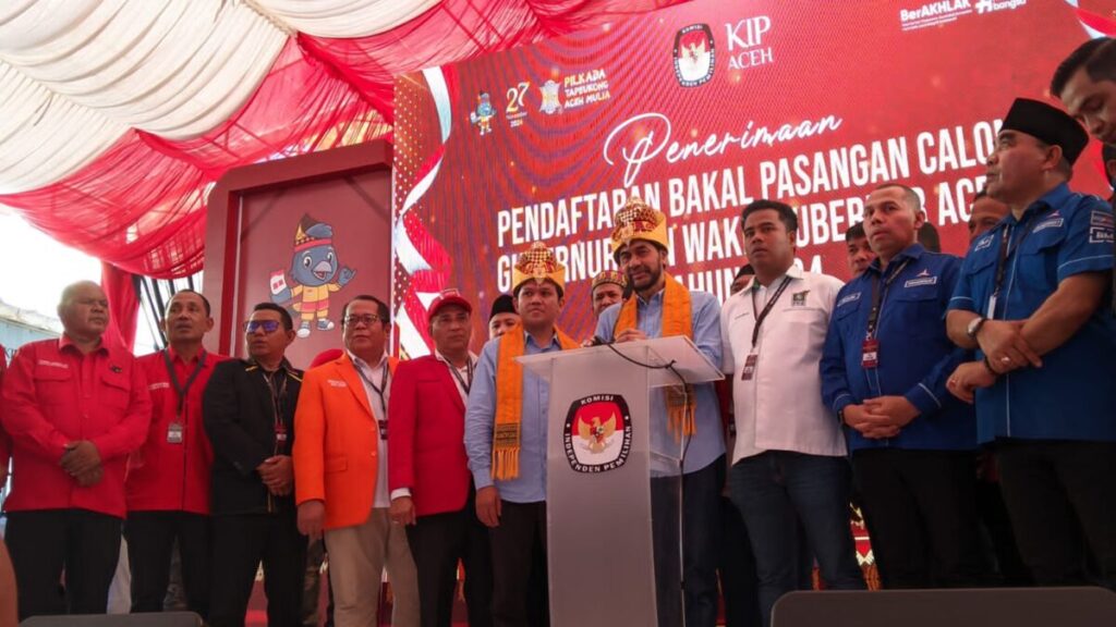 Analisaaceh.com, Banda Aceh | Pasangan calon Gubernur dan Wakil Gubernur Aceh, Muzakir Manaf (Muallem) dan Fadhlullah (Dek Fad), resmi mendaftarkan diri ke Komisi Independen Pemilihan (KIP) Aceh pada Kamis (29/9/2024) pukul 16.30 WIB.