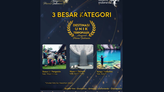 Analisaaceh.com, Banda Aceh | Museum Tsunami Banda Aceh berhasil masuk tiga nominasi terbaik kategori destinasi unik di ajang Anugerah Pesona Indonesia (API) 2020.