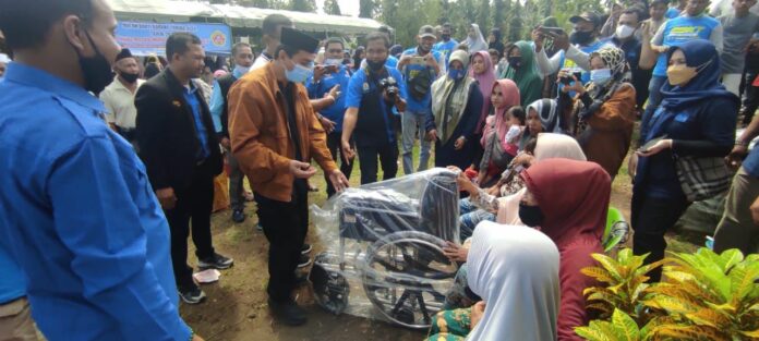 Analisaaceh.com, Lhoksukon | Anggota Komisi V DPRA Muslim Syamsuddin S.T M.A.P menyalurkan bantuan kursi roda dalam rangka Bulan Bakti Karang Taruna di Gampong Punti Seuleumak Barat Kecamatan Tanah Luas Kabupaten Aceh Utara, Minggu (12/12/2021).