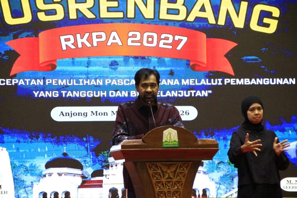 “Tahun 2027, kita mengusung tema Percepatan Pemulihan Pascabencana melalui Pembangunan yang Tangguh dan Berkelanjutan,” ujar Mualem.