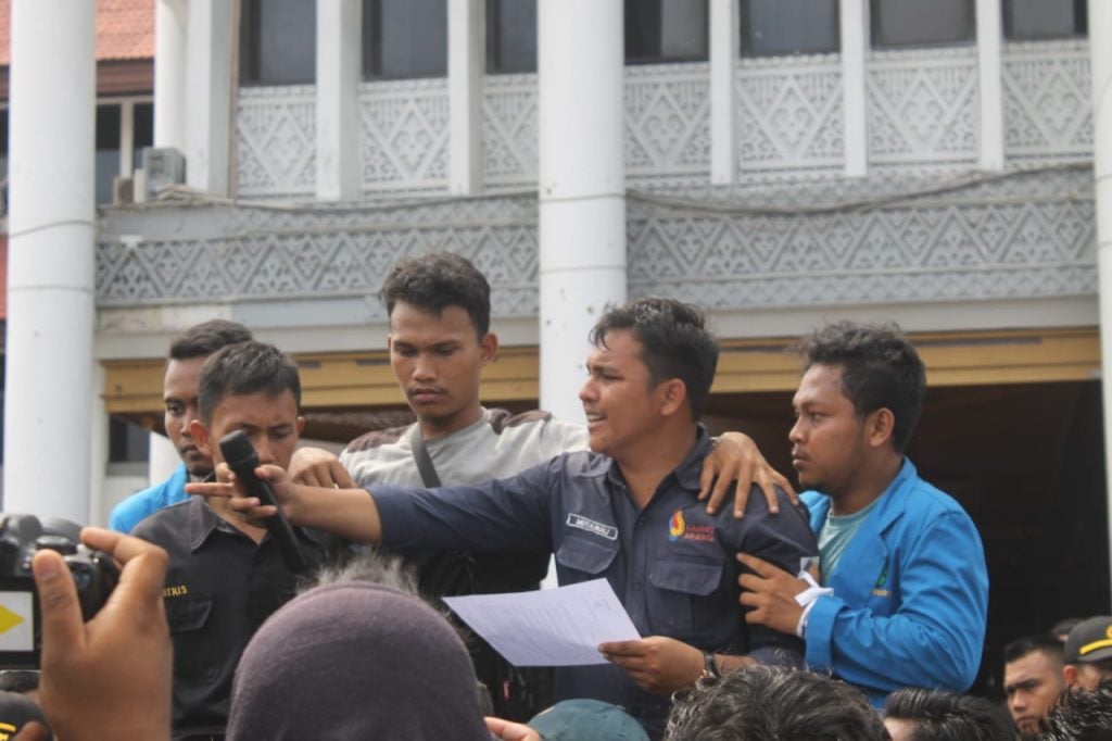 “Kepada Bapak Kapolda dan Kapolres agar segera membebaskan teman kami, karena massa aksi yang berasal dari seluruh kampus di Aceh akan satu suara untuk membebaskan teman kami”.