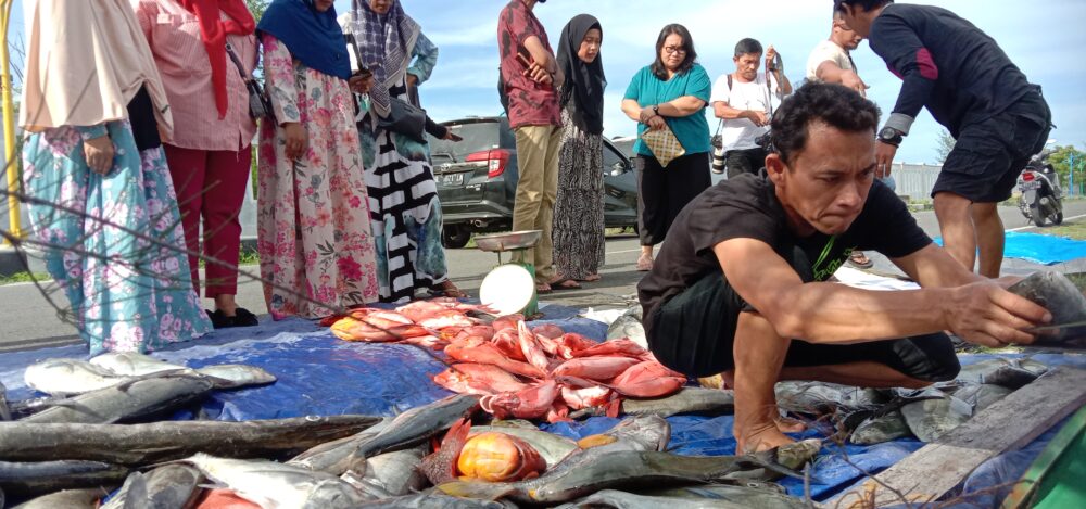 Analisaaceh.com, Banda Aceh | Nelayan Pulo Aceh bersama dengan Aceh Spearfishing menjualkan dua ton hasil ikan tangkapan yang keuntungannya akan disumbangkan ke Rakyat Palestina di Pelabuhan Ule Lhe, Senin (6/11/2023) sekira pukul 15.00 WIB.
