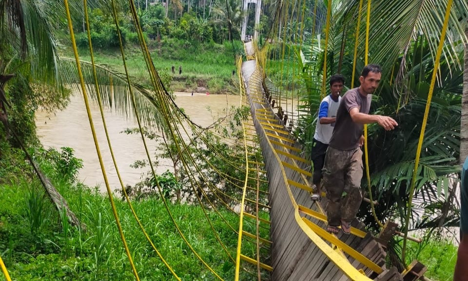 Jembatan Gantung Desa Awe Geutah, Kecamatan Siblah Krueng, Kabupaten Bireuen yang roboh (Foto: Ist)